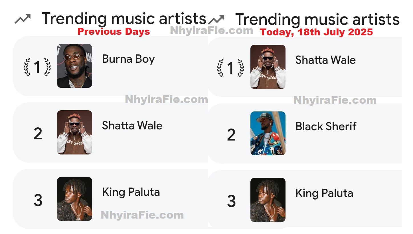 Today, 18th July 2025: He became the most-searched artist in Ghana, holding the #1 spot on Google Trends’ real-time metrics for musicians.